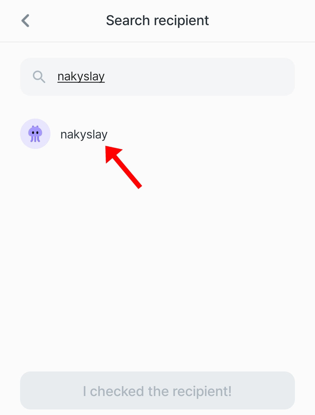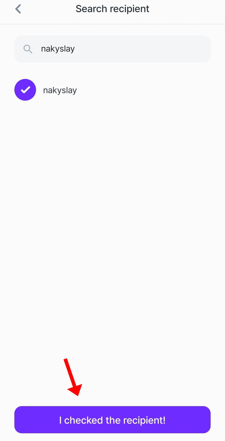 then click on "i checked the recipient" button!