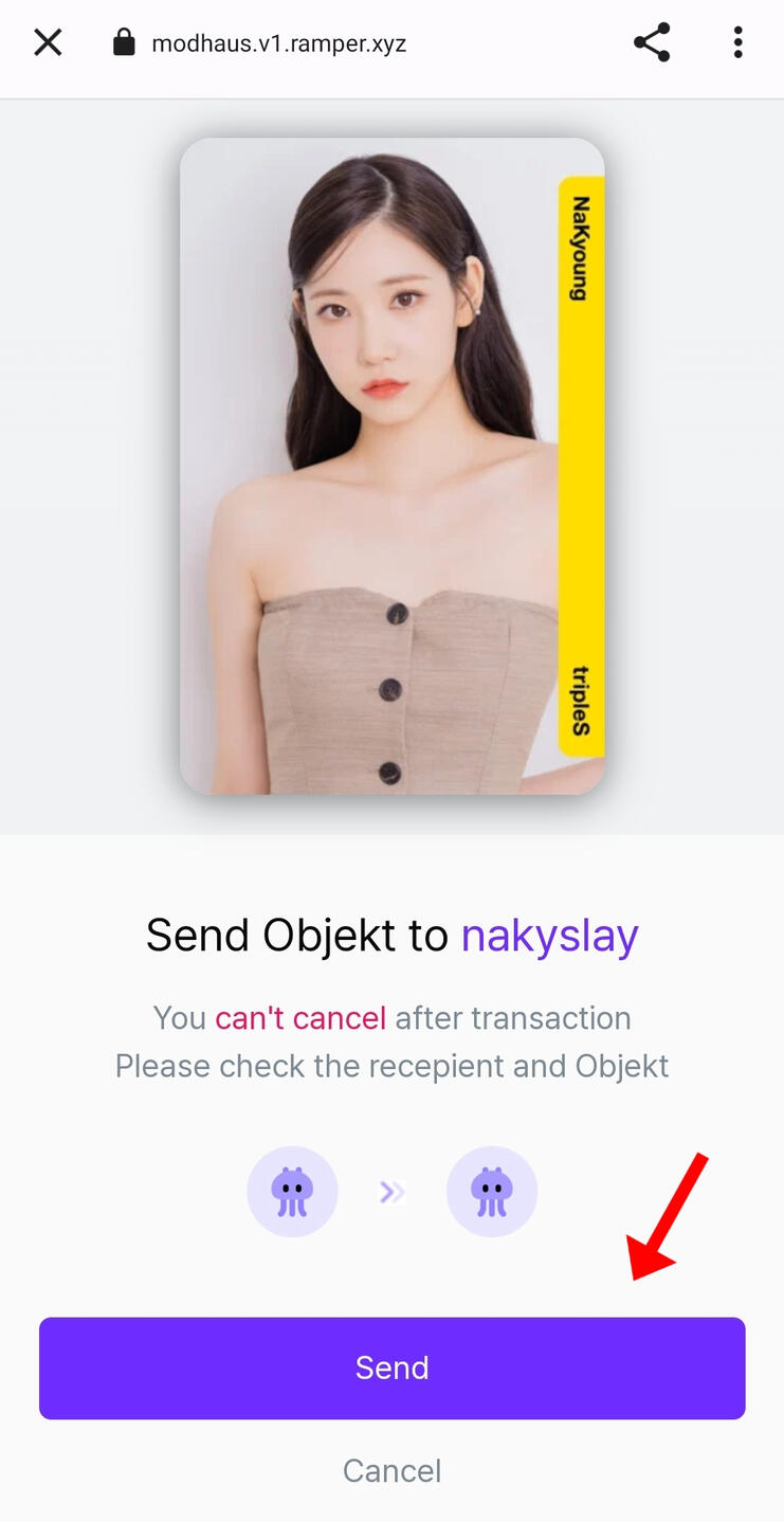 here click button "send" and other person should get an objekt!